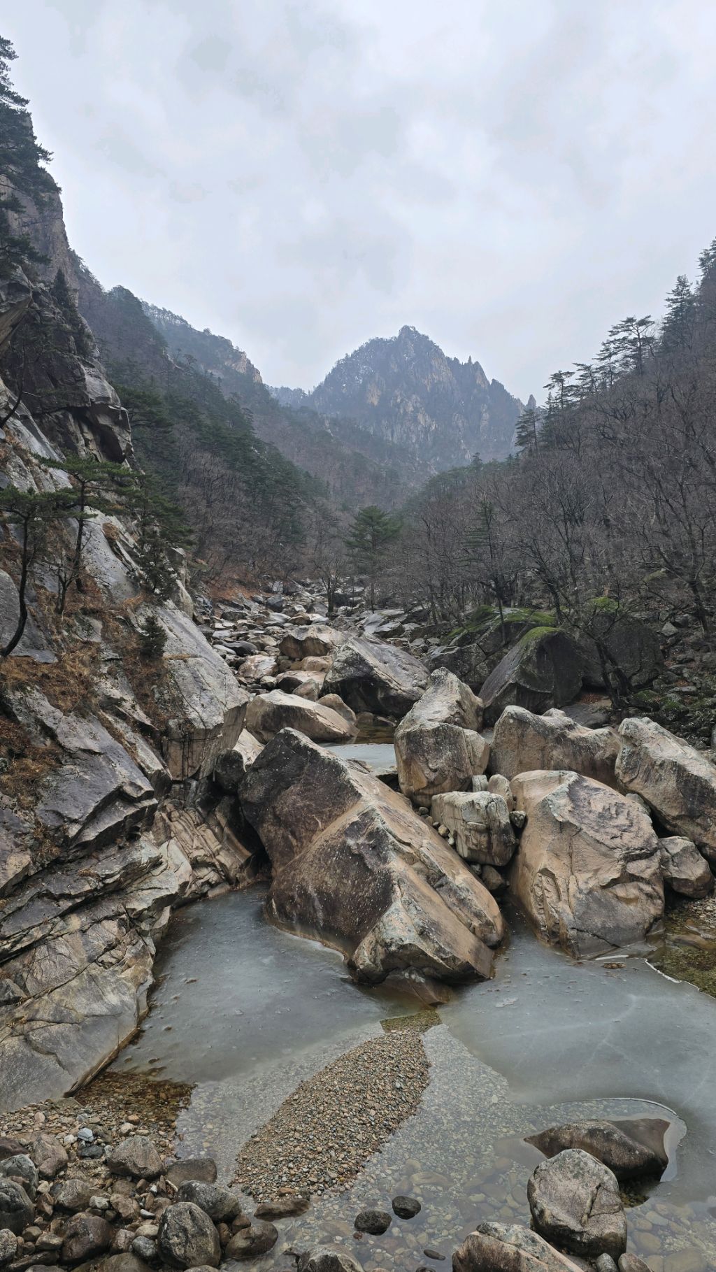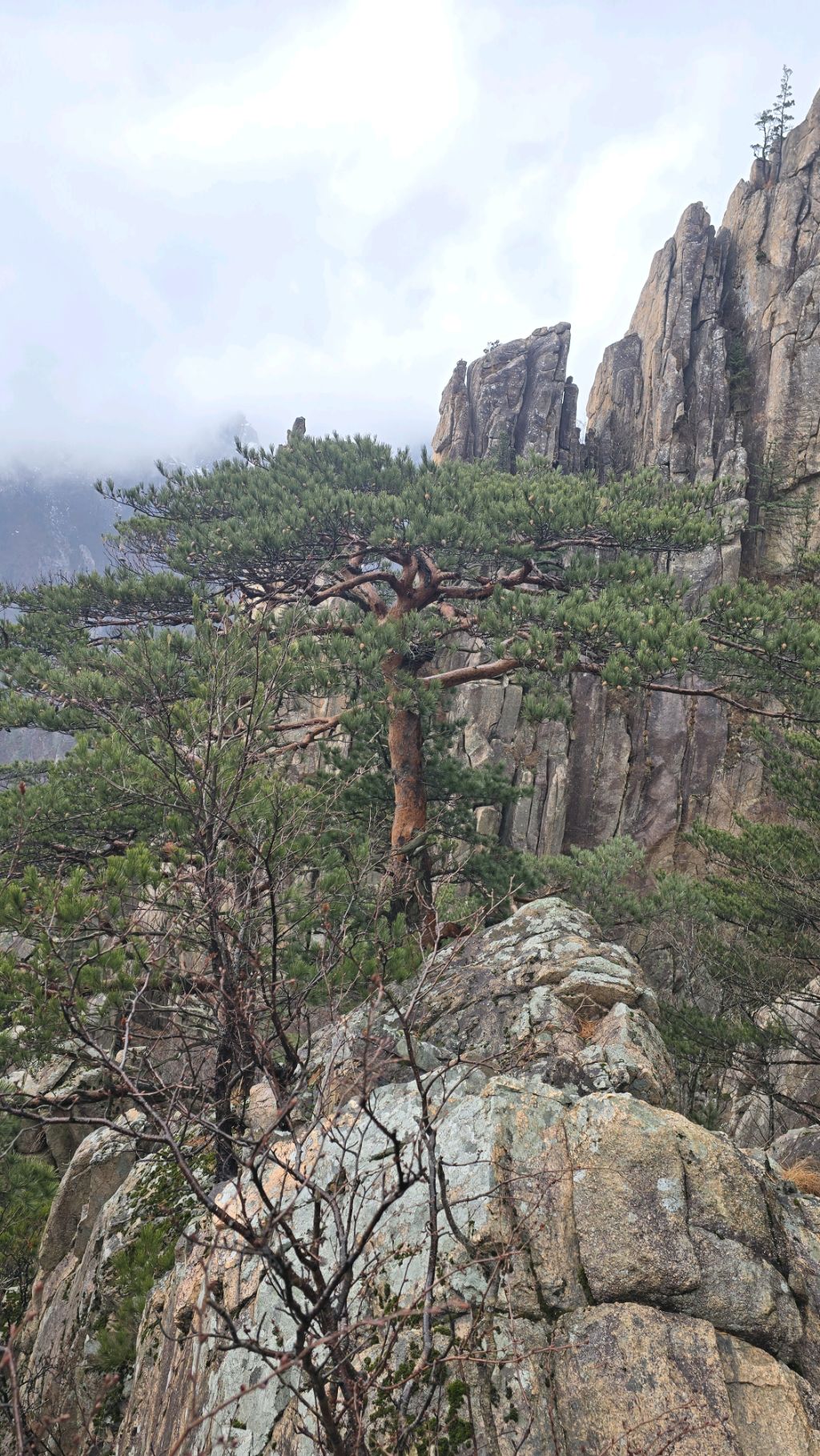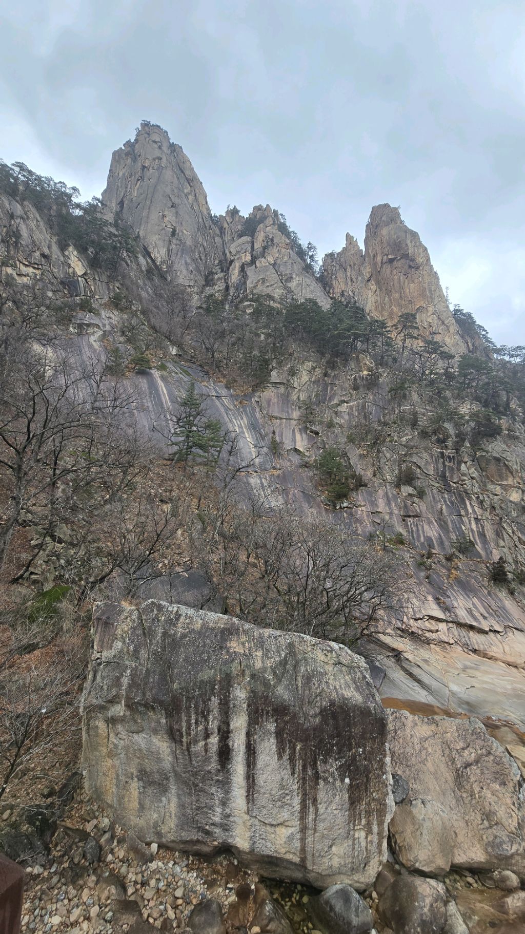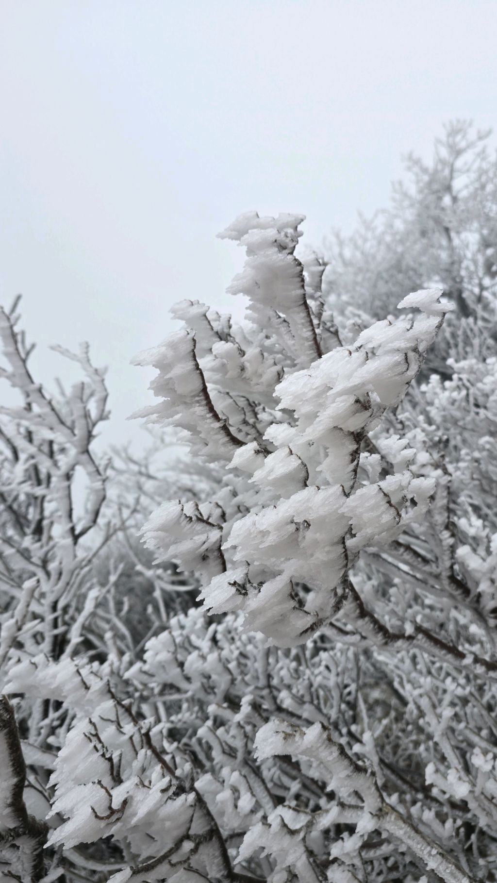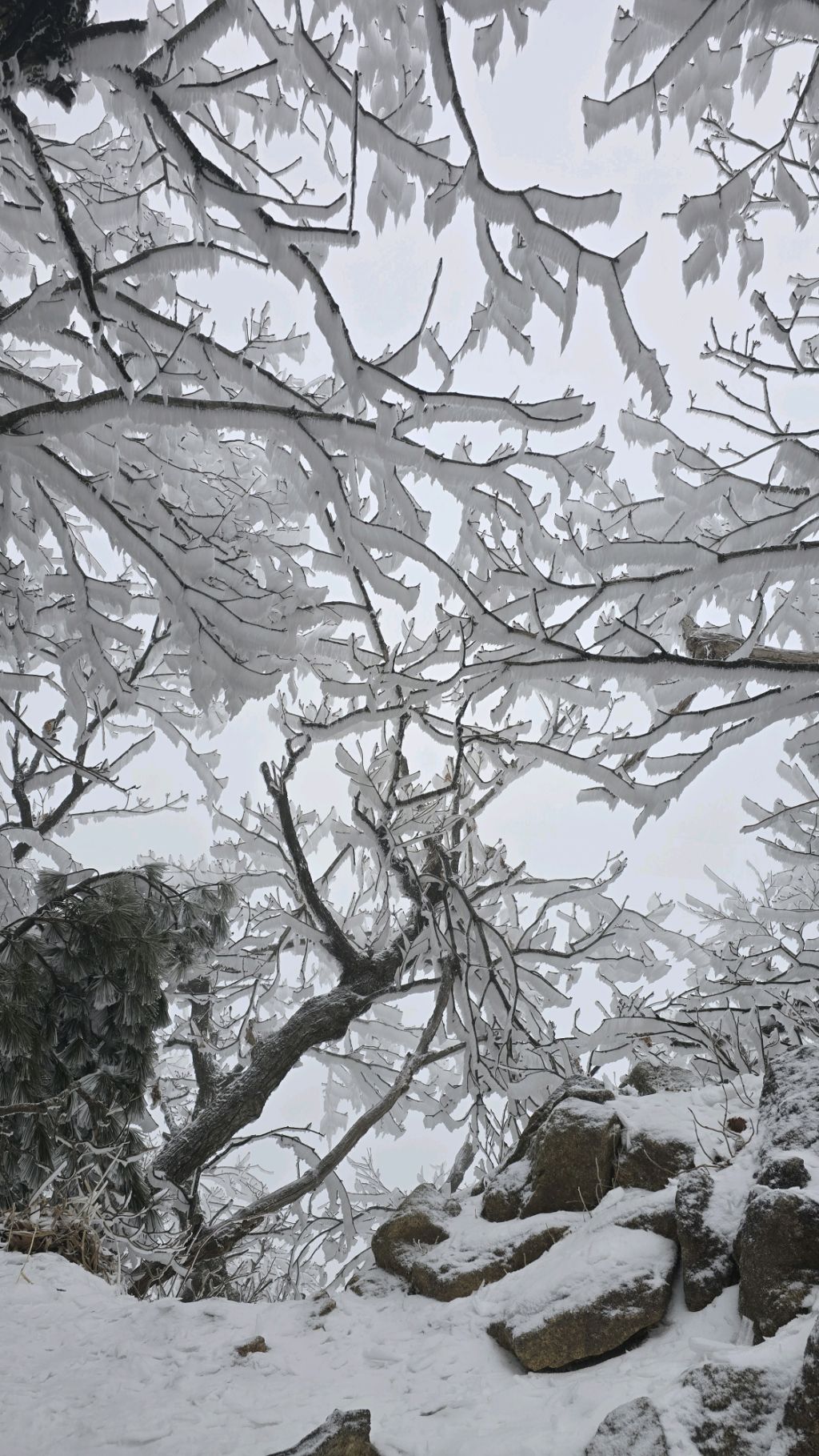 오색에서 04시 출발 빗방울이 조금씩 덜어지고 있지만 산행 시작 700고지 부터는 바닥이 얼어 아이젠 착용하고 산행 습도가 높아 상고대 볼 생각에 한번 쉬지도 않고 정상에 도착한다 하얗게 얼어붙은 정상석 바라보고 바로 회운각대피소까지 달려가 아침으로 빵 한조각이랑 사과 반쪽 먹고 어디로 가야하나 걱정도 잠시 공룡능선으로 중간중간 하얀 눈길에 상고대까지 눈이 즐겁다 비록 파란 하늘과 풍경은 볼 수 없었지민 나무마다 상고대 주렁주렁 눈꽃이랑 상고다 덕분에 하루 즐기고 갑니다