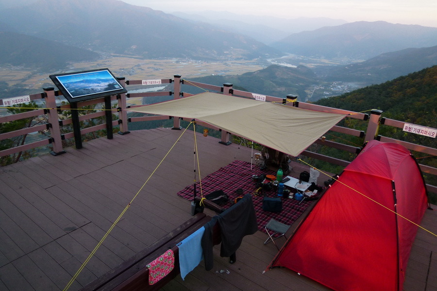 이곳 오산은 조망이 좋아 동해삼거리(전망대)와 그지나서 선바우전망대같은 만든 전망대 그리고 둥주리봉 팔각정 등에서 비박을 하기가 좋습니다