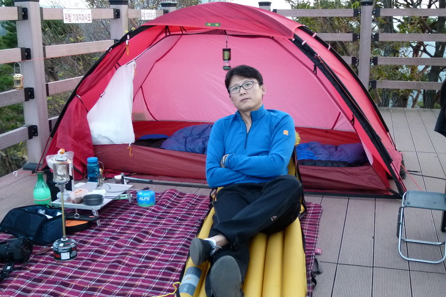 팔각정이 불안해서 적당한곳에 자리를 잡고