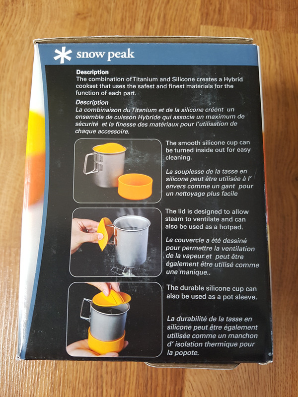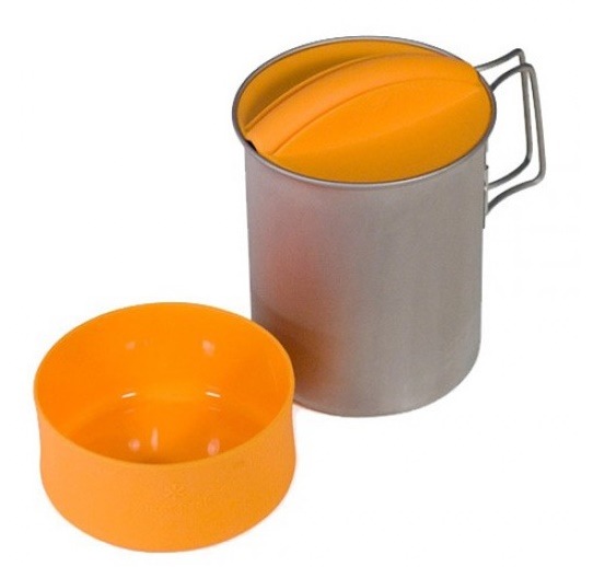 구성품: 830ml용량의 티타늄 포트, 295ml의 실리콘 컵, 화상방지용 손잡이로 활용 가능한 실리콘 뚜껑, 수납파우치