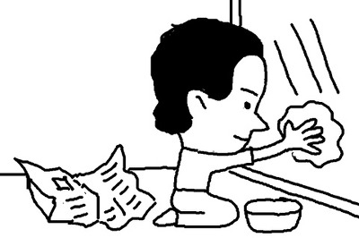 신문지를 막대기에 말아 물을 적신 다음 위아래 굴리듯이 문지르면 청소하기 쉽다. |