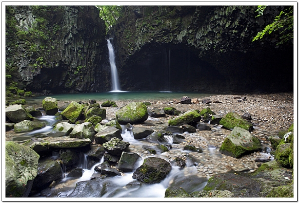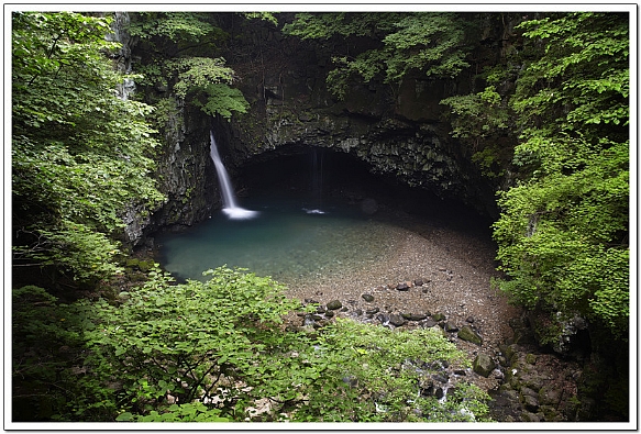바위동굴이 신비한 힘을 발휘하는 곳, 역시 바위벽이 주상절리의 형태를 보여준다.