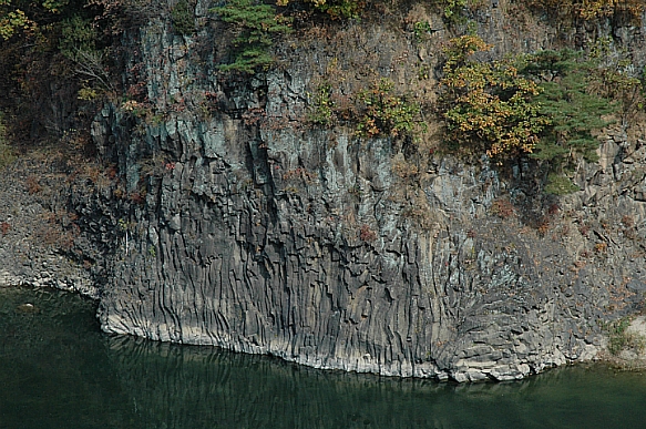 한탄강의 주상절리, 추가령열곡의 화산지형인 한탄강이 보여주는 대표적인 주상절리이다.