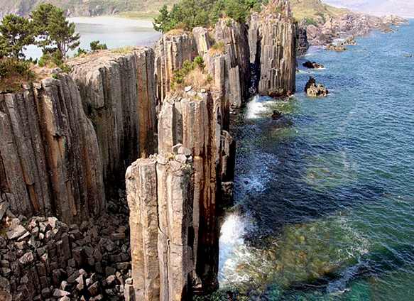 강원도 통천군에 있는 총석정, 사진으로 보면 풍경의 집약도에 있어서 최고의 주상절리 같아 보인다. 현재 북한에 있어 최근에 촬영된 사진이나 동영상자료 등이 없어서 그 절경을 접할수없는 아쉬움이 남는 명소이다.