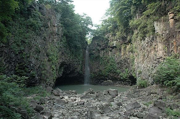 제주도와 비슷한 화산지형을 보여주는 재인폭포와 바위벽