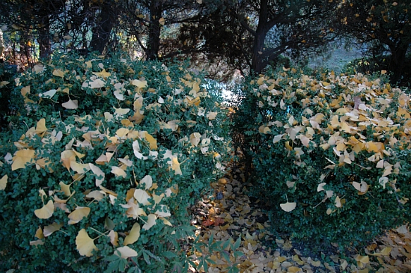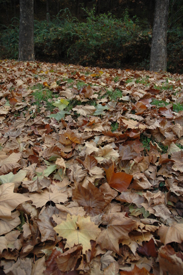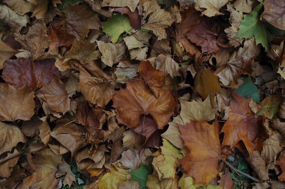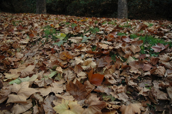 플라타너스 잎들을 비롯한 낙엽들이 가을의 풍부한 색깔을 연출합니다.