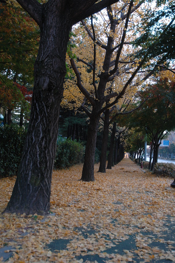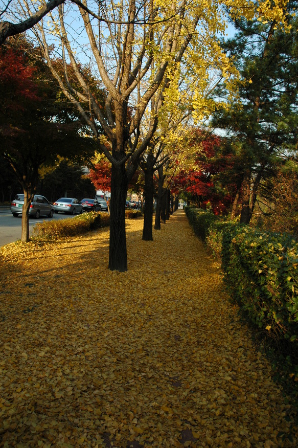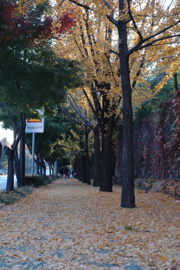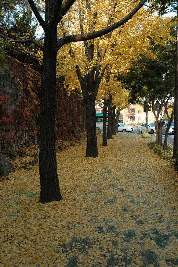 예전엔 낙엽들이 떨어지자마자 환경미화원 아저씨들이 쓸어버려...... 약간 불만이었는데, 요즘은 이렇게 2주정도 그대로 두고 있답니다.