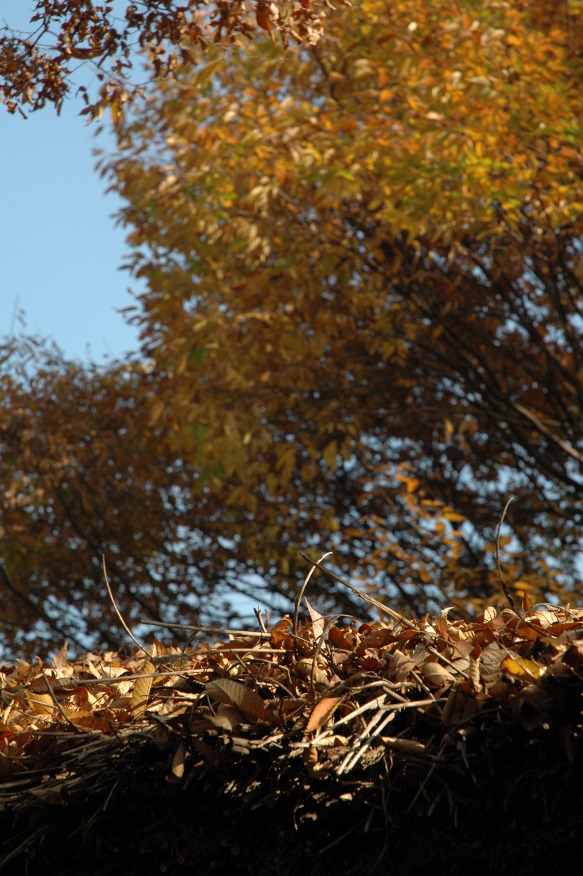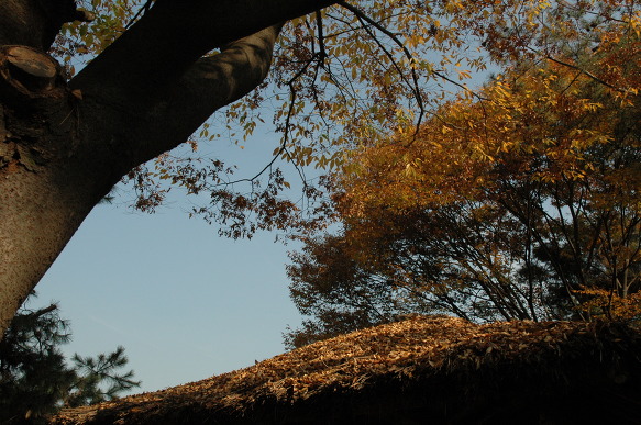 초가지붕을 얹은 정자와 느티나무(?)가 만들어내는 가을빛