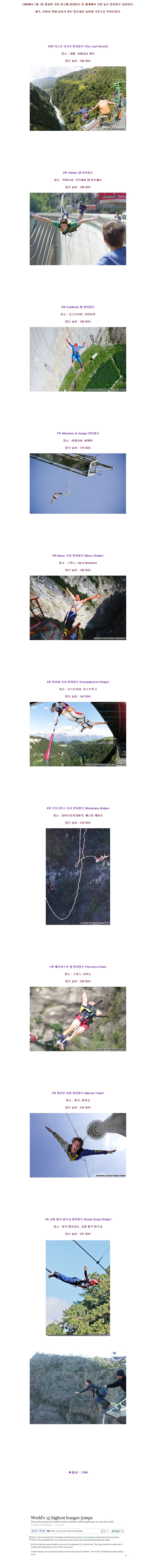 작성자포도군 작성시간 12.07.19 여기는 없지만 원래 CNN 원문에 있는 나머지 5개 중 14위에 해당하는 134미터에서 뛰어 봤습니다.