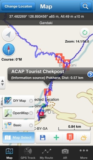 일반적으로 지도앱나 GPS앱이 가지고 있는 기능들은 대부분 가지고 있습니다. 하지만, DIY Map GPS에는 또다른 기능이 있습니다.
