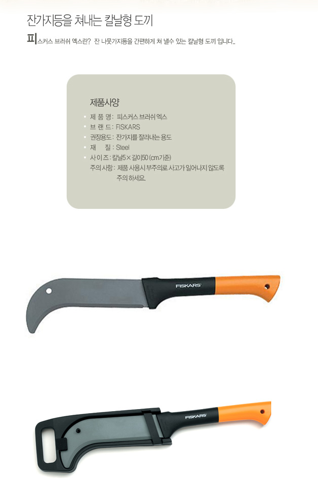 우리가 적지않은 돈 9만원 정도면 아무런 법적 문제없이 구입가능한 비슷한 성능의 정글칼 입니다. 저도 이거 빌려서 써봤는데 가벼워서 가끔은 원하는 힘을 줬을때 명확한 커팅이 불가능 하더군요. 그리고 결정적으로 큰 힘주면 깨집니다. 특히 플라스틱 부분이... 인간적으로 도시락 싸들고 비추입니다. 플라스틱 손잡이는 제 손에 있고, 칼날은 제 귀옆으로 날라가는 사건을 저는 아직도 기억합니다.