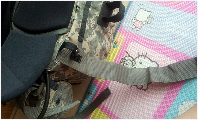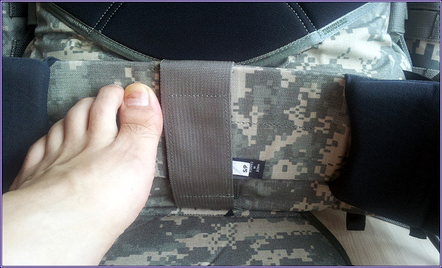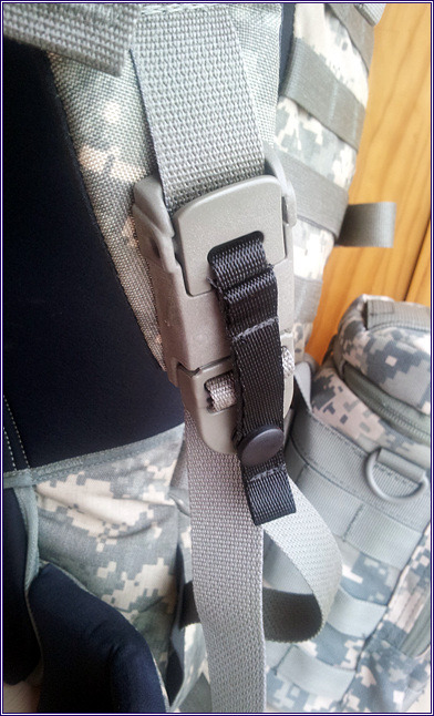 이동중 갑자기 전투상황 벌어질때 신속하게 배낭을 벗을수 있는 장치.