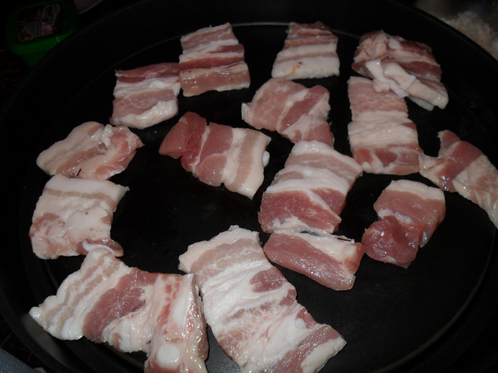 산중 깊은곳에서 먹는 삼겹살에 소주한잔.....