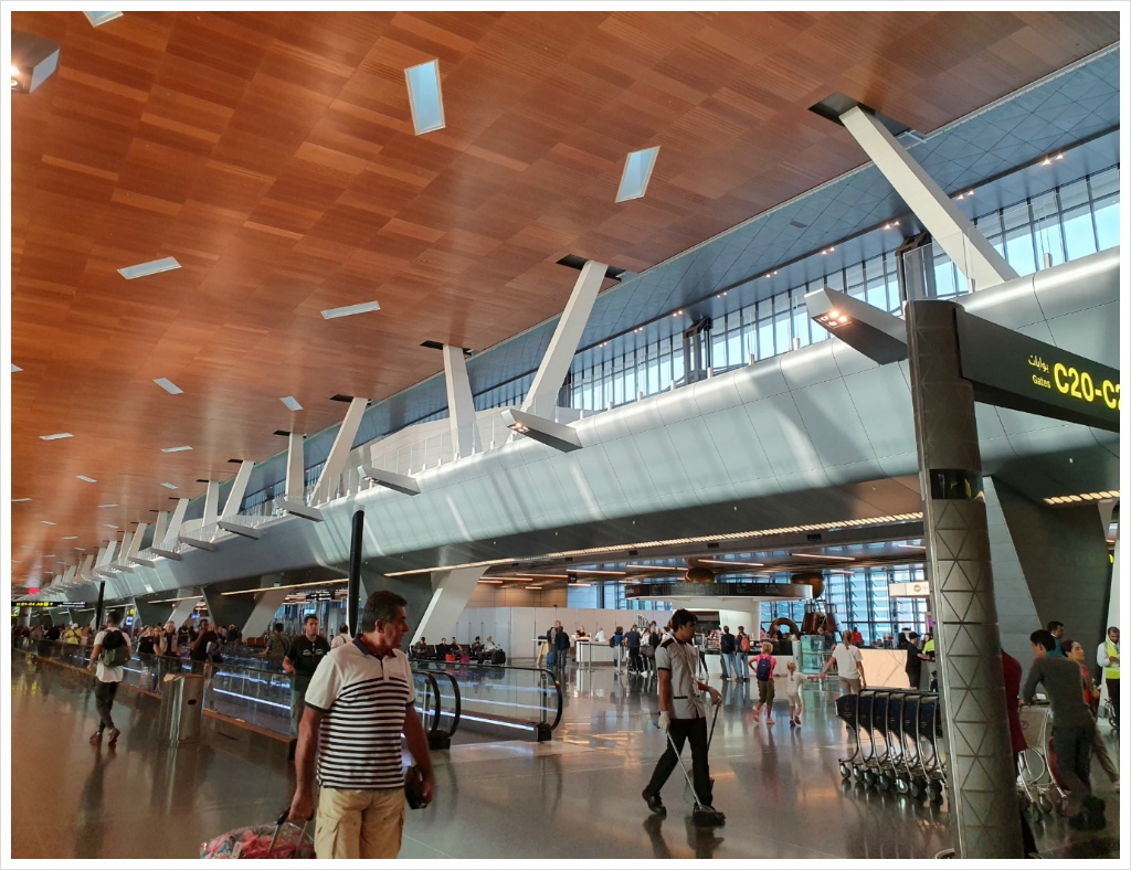 거점 환승공항으로 두바이와 쌍벽을 이루는 도하 하마드국제공항.. 규모가 상당히 큰 공항이다.