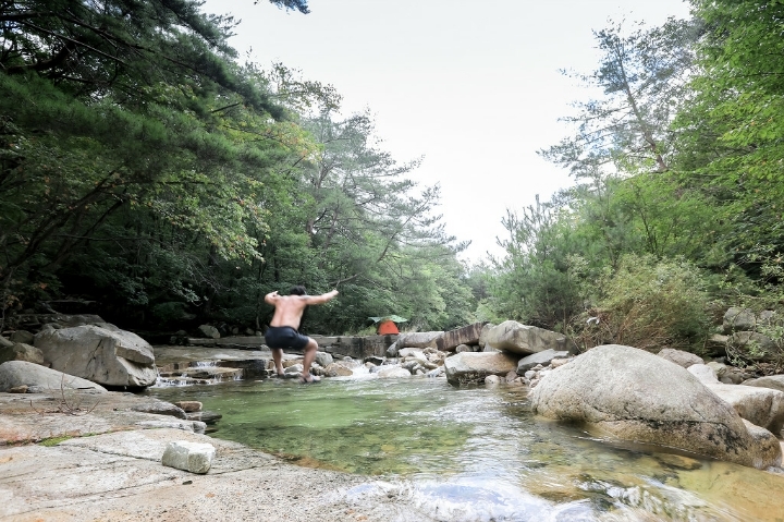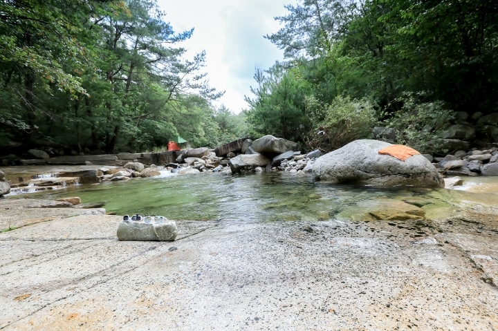 지난 주말 서락을 가고자퍼서 이쁘게 박짐도 꾸려노코서 여이똥하고있을 찰나에 왼쪽 발목이 돌아 시큰거려 포기하고 가볍게 가볍게 계곡수에 몸이나 담그며 묵자묵자 하자는 떨거지들의 꾐에 빠져서 *악산 언저리 ****으로 고고씽!