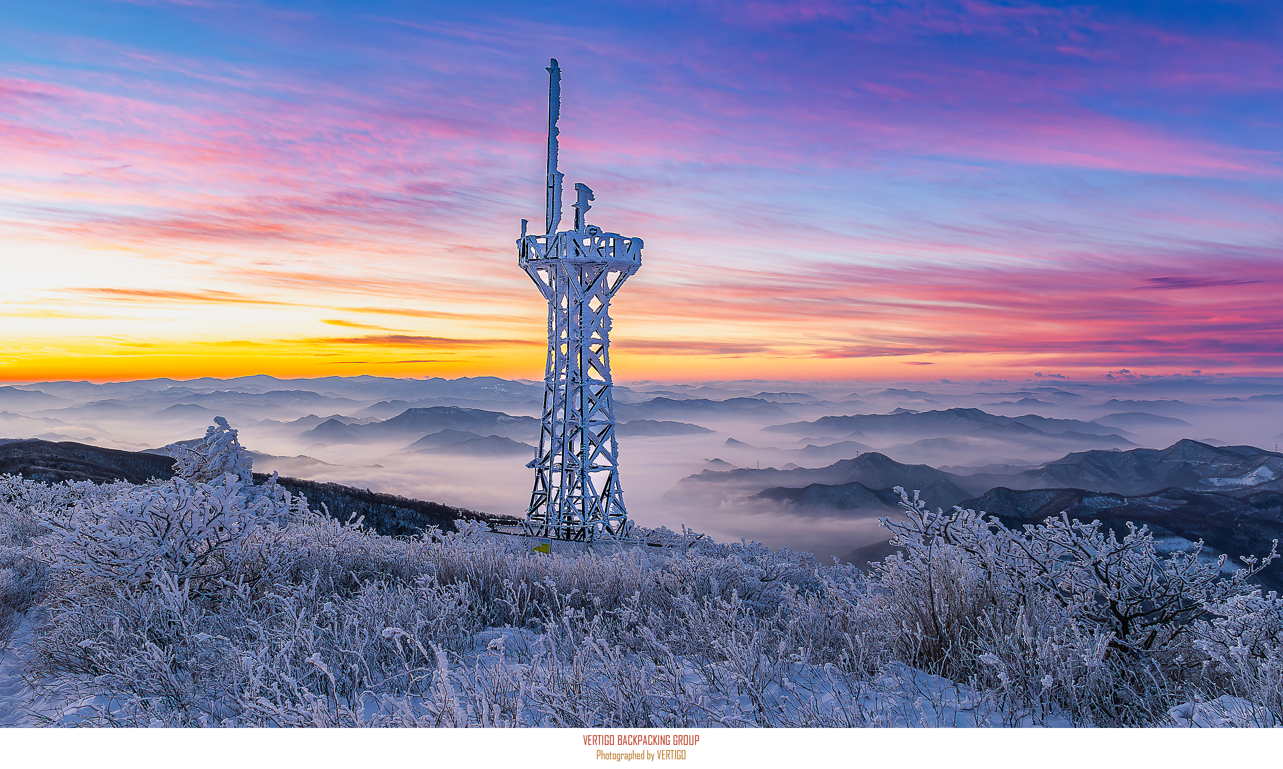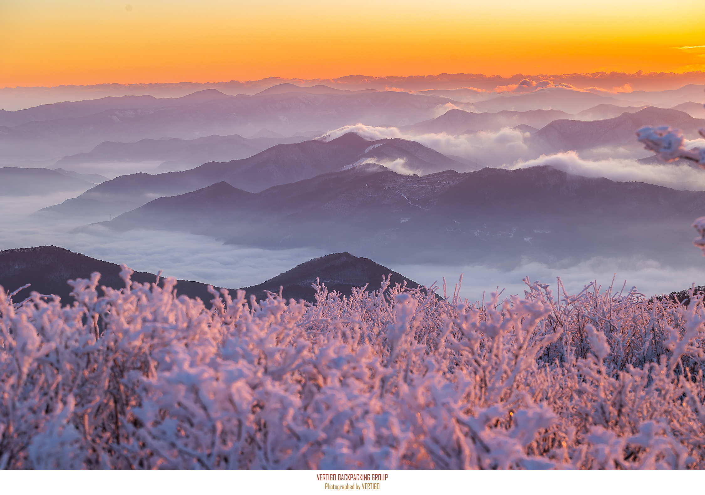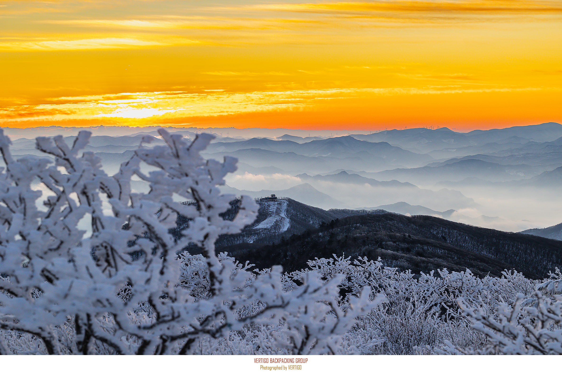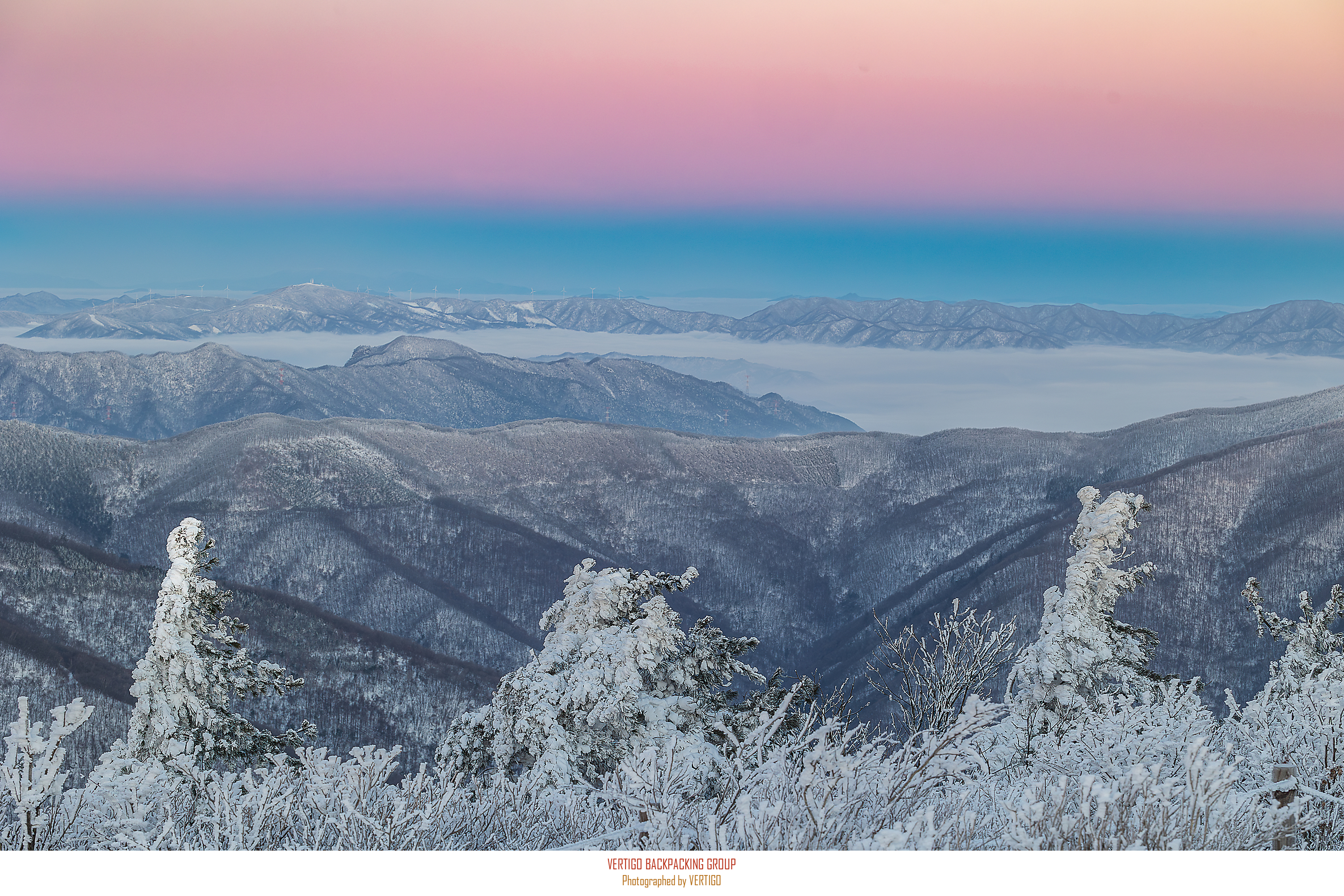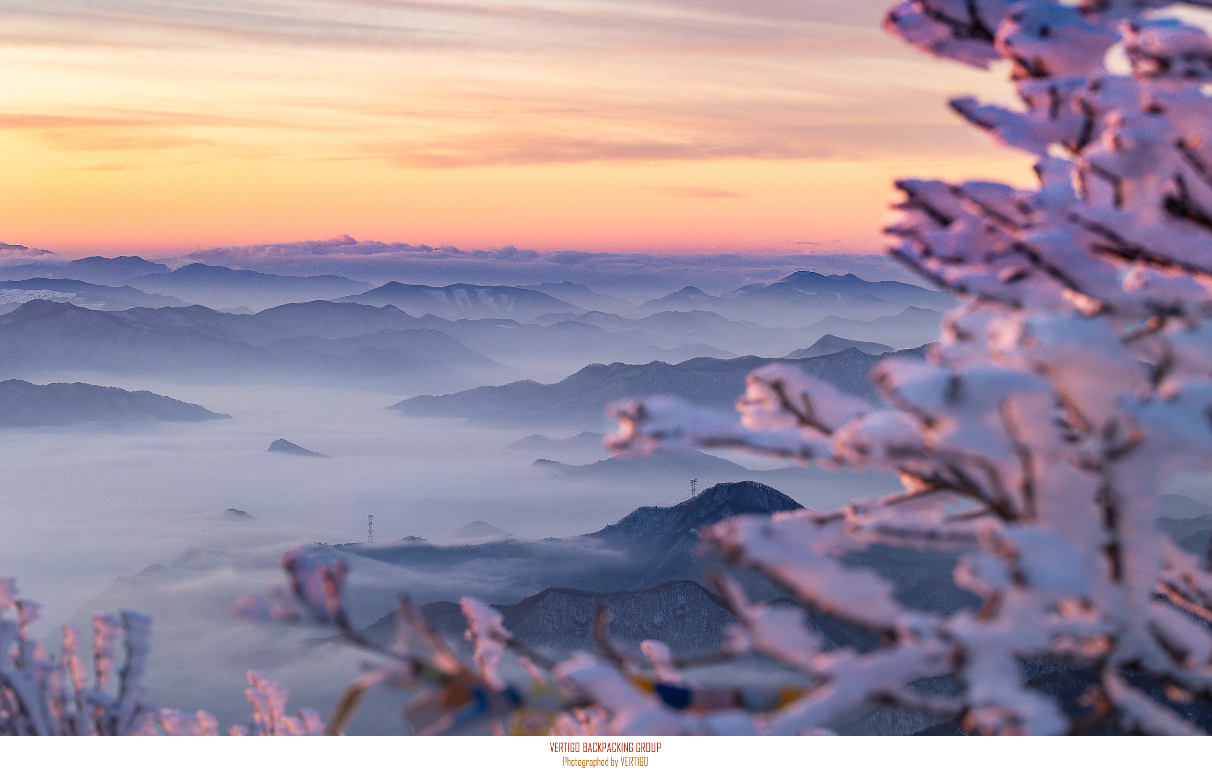 설경속에 여명과 함께 운해의 지랄발광이 있었다.
