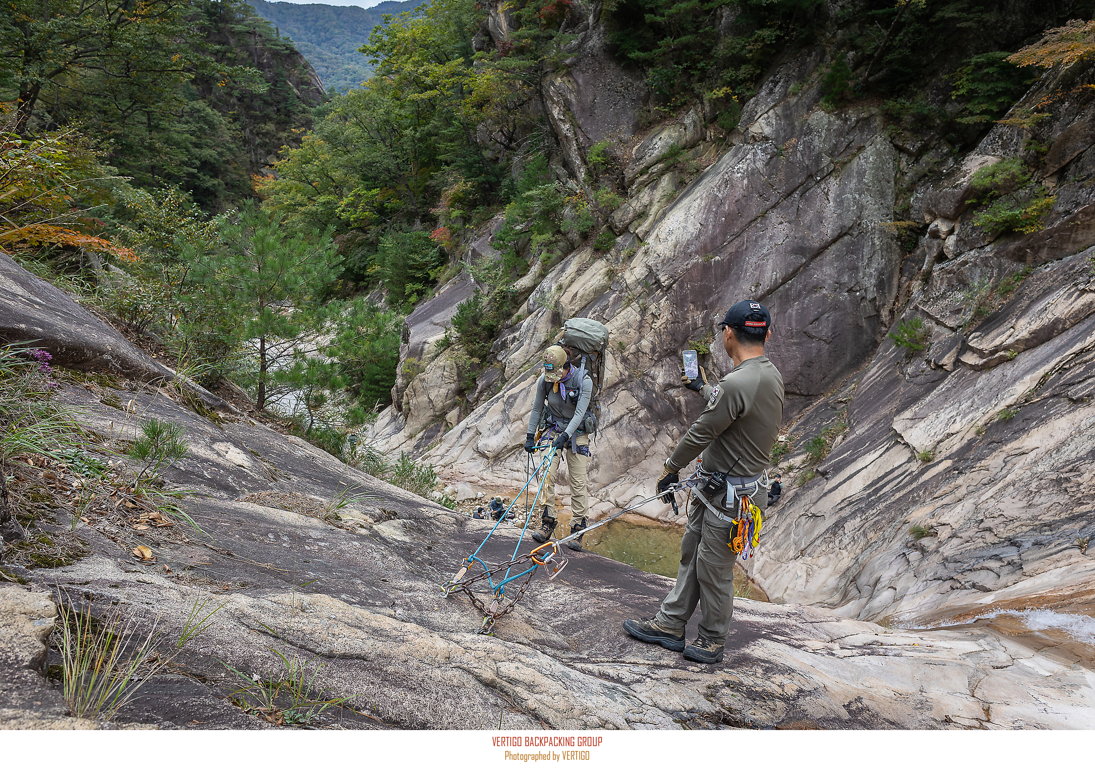 대략 60m쯤 대슬랩이 있어 안전하게 하강한다.