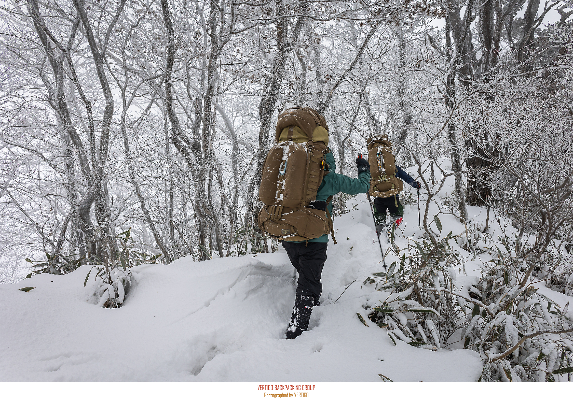 이곳은 크램폰도 필요하지만 스노우슈즈가 있어야 제대로 진행이 가능하다.