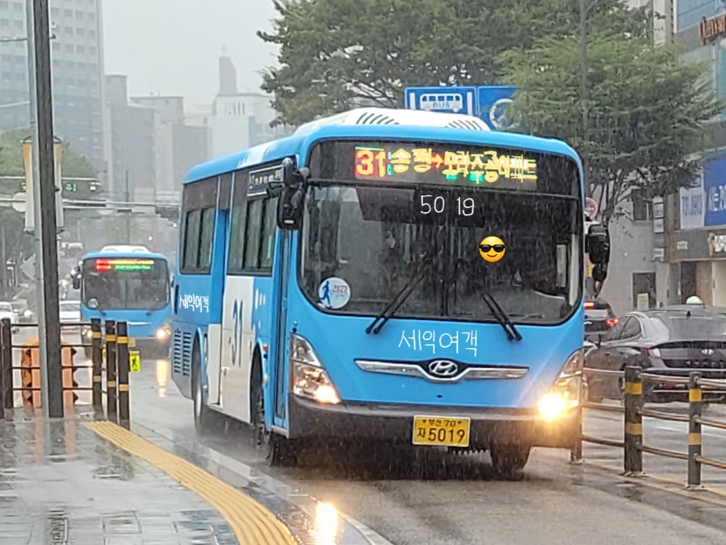 이 버스는 내부에 회색봉, 로우백 플라스틱 시트가 적용되고 무지개손잡이가 달려있고 엄지봉이 없고 격벽이 설치되어 있습니다. 참고로 삼신교통 취소분 차량이며, 이 버스를 도시철도해운대역에서 메가마트동래점까지 시승했고 반만원버스입니다.