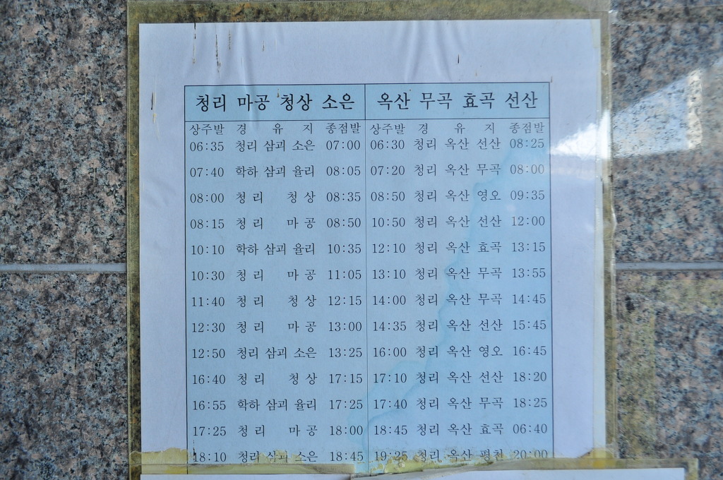 이평 : 괴산군 청천면 이평종점 위 삼거리에서 청천행 이평종점(옥양동 - 괴산)에서 괴산행 버스 연계