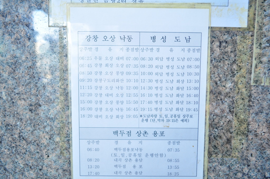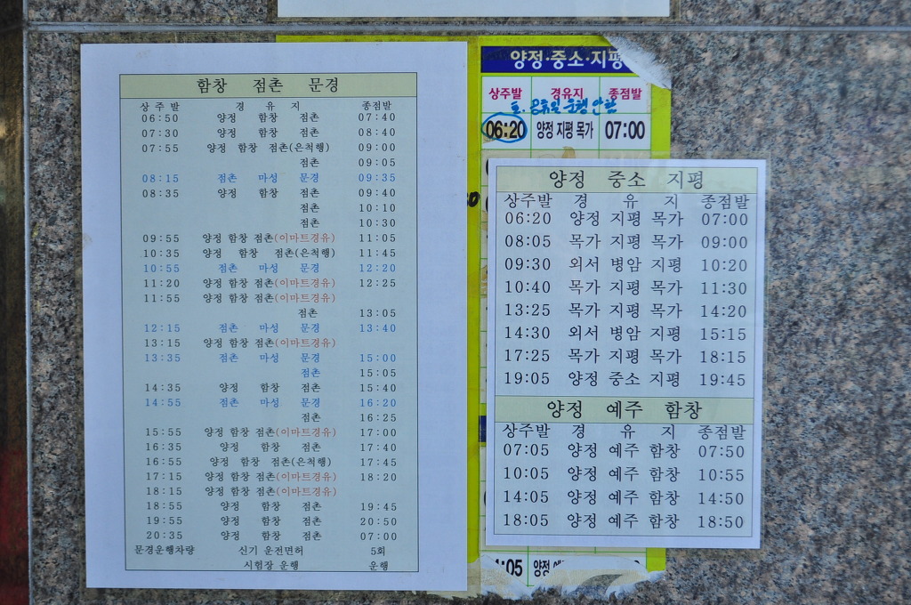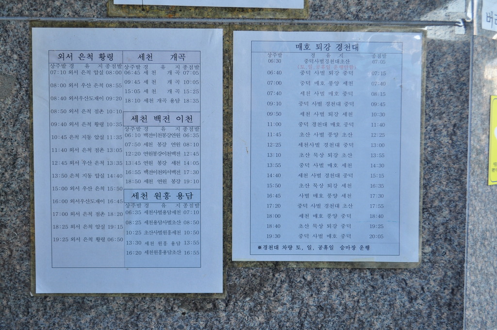 용화 : 상주시 화북면 청천, 보은, 점촌행 버스 연계