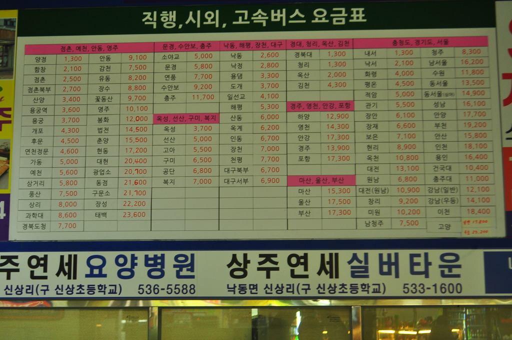 동서울 : 점촌경유(일부시간대에 한해서 무정차)