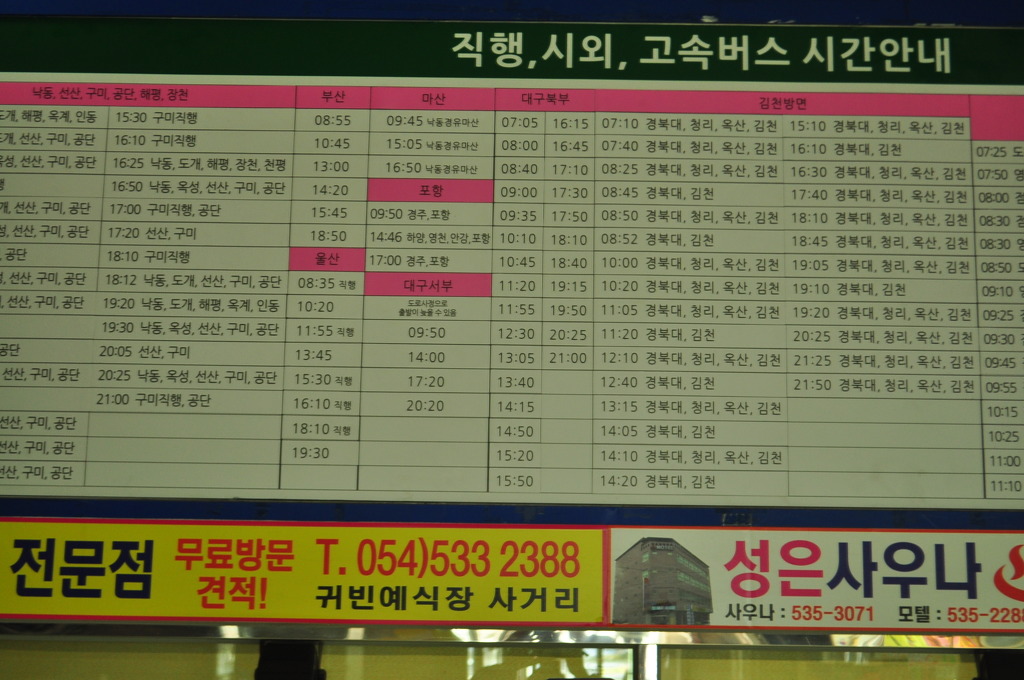 울산 : 구미경유(직행은 구미직통)