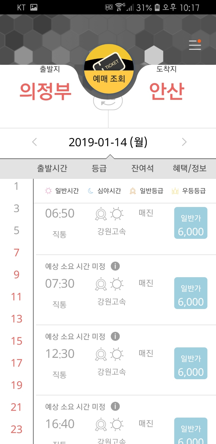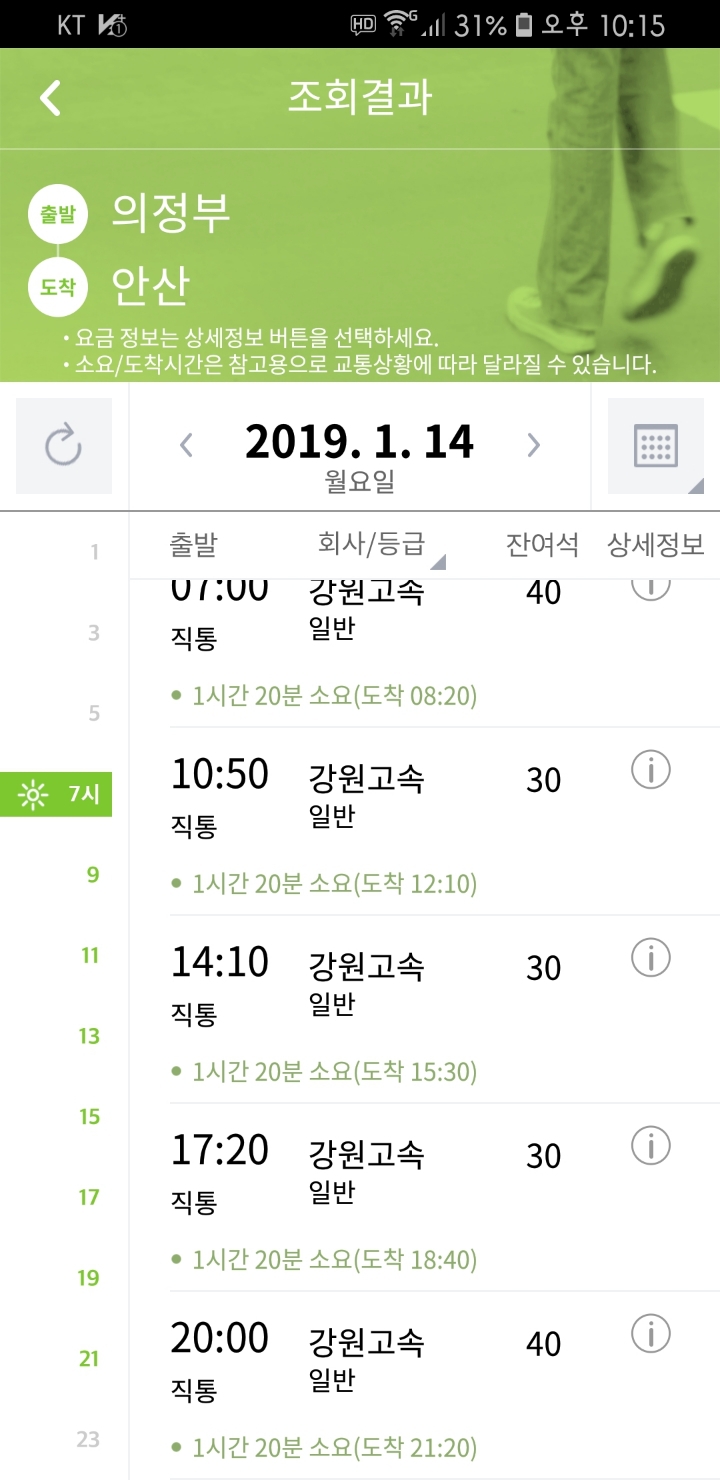 1월14일 의정부 ->안산 예매를 하려고 버스타고와