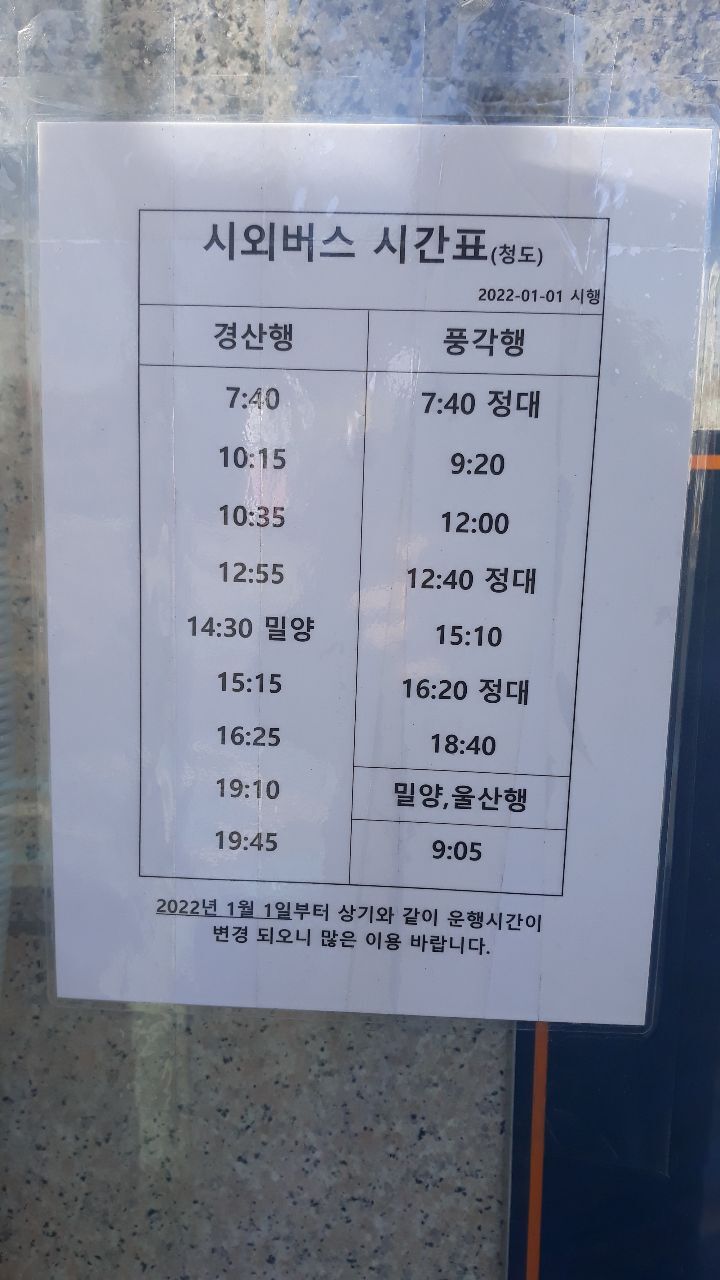 청도 시외버스 시간표 작성자부산교통|작성시간22.01.03|조회수1,003 목록 댓글 1 글자크기 작게가 글자크기 크게가 다음검색 현재 게시글 추가 기능 열기 북마크 공유하기 신고 센터로 신고 댓글 댓글 1 댓글쓰기 답글쓰기 댓글 리스트 작성자바퀴자국 | 작성시간 22.01.06 경산버스 시외직행 차량입니다. 이미지 확대 댓글 전체보기