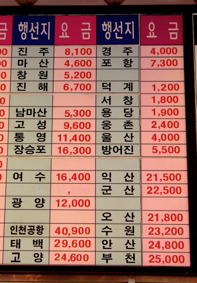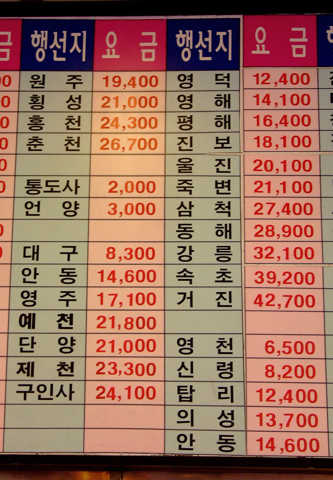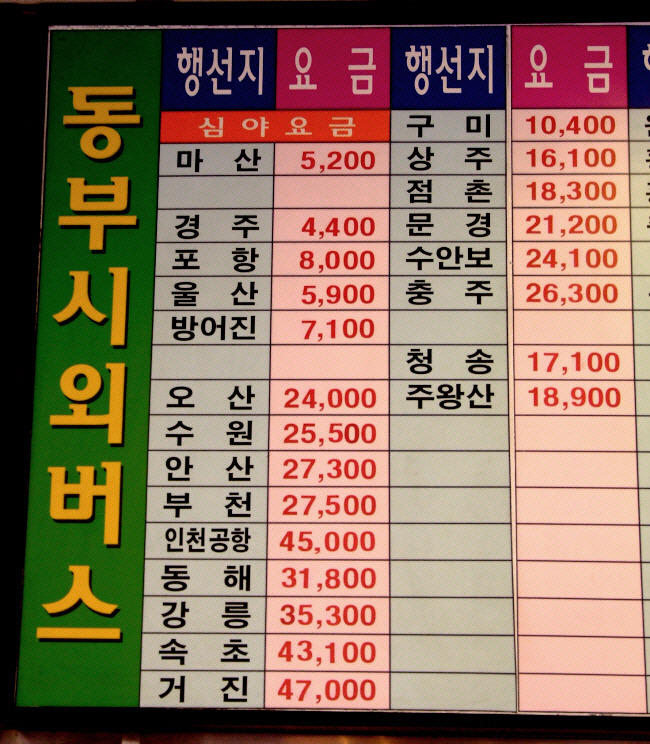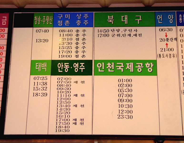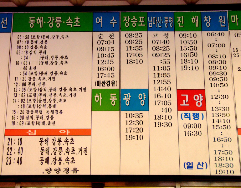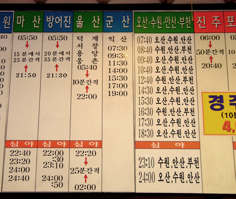 시외버스와 관련된 시간표로, 고속버스 노선은 올리지 않았습니다.
