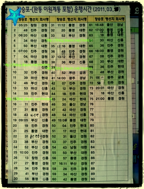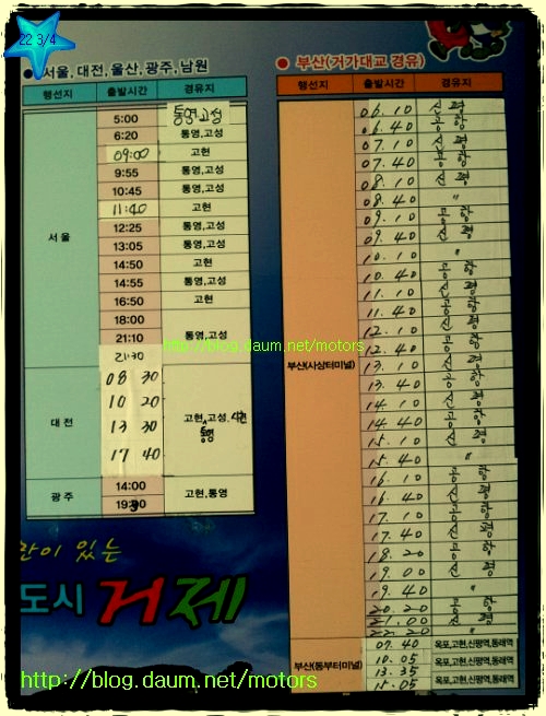 장승포 시외터미널. 서울,대전,광주,부산(사상,노포동)시간표.