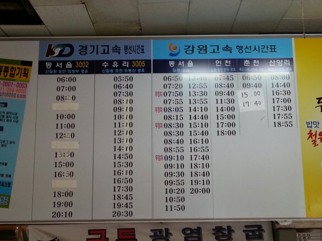 [철원] 와수리터미널 / [화천] 사창리터미널 시간표 (2014.07.12) 작성자새서울레이싱고속|작성시간14.07.14|조회수2,642 목록 댓글 3 글자크기 작게가 글자크기 크게가 . 다음검색 현재 게시글 추가 기능 열기 북마크 공유하기 신고 센터로 신고 댓글 댓글 3 댓글쓰기 답글쓰기 댓글 리스트 작성자전북고속 | 작성시간 14.07.14 참고로 제가사는 안양도 와수리 가는것이 있습니다. 답댓글 작성자덕성여객(논산) | 작성시간 14.07.15 안양에 사시는군요... 저도 예전에 안양에 살았습니다만 ㅎㅎ 답댓글 작성자키큰사람 | 작성시간 14.07.15 인천 --안양 왕궁예식장앞 --비산동 ----외곽순환고속도로 ---와수리 운행 하는 강원 여객이 있읍니다 댓글 전체보기