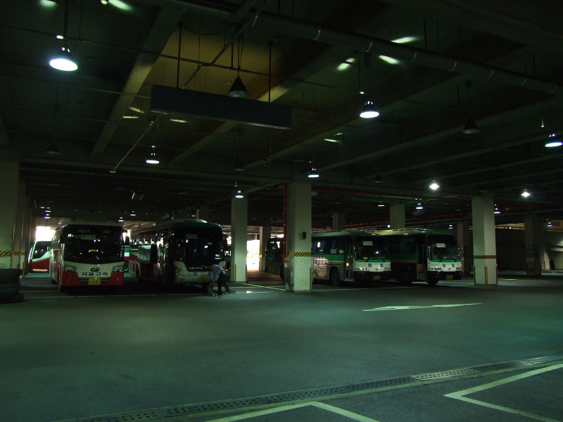 1층은 하차장뿐만 아니라 심야버스들이 출발하는 기점지로도 사용된다.