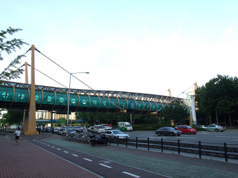 대신 현대백화점, 부천시청, 안중근공원이 있는 건너편으로 아름드리 육교가 연결해준다.