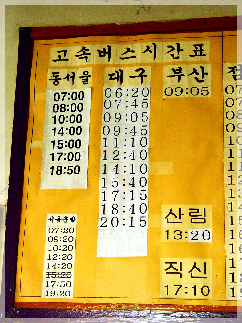 시외버스는 거의 99% 서울(동서울) 아니면 대구(북대구)행이다.