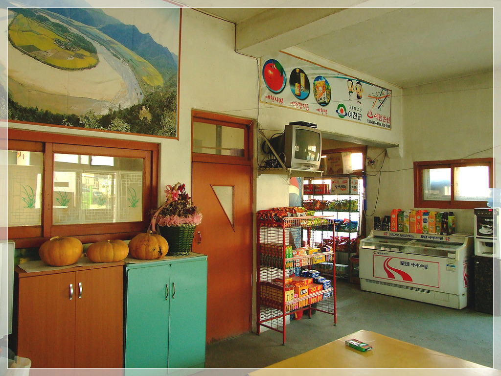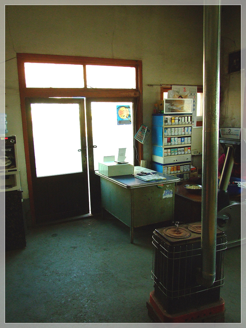 먼지가 수북히 쌓인 자판기 한 대와 시골 슈퍼다운 철제 여닫이 문이 우릴 반겨준다.