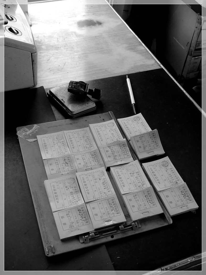 아직 여기서도 종이승차권을 직접 뜯어 도장을 쾅쾅 찍어주는 식이다.
