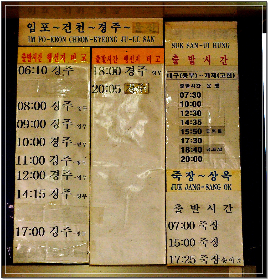 포항행 완행버스 옆에는 경주행 완행버스도 붙어있다.