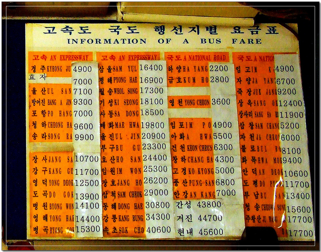 동해와 강릉은 3만원이 넘고, 속초는 4만원이 넘는다! 부산-거진 완행버스에 이어 두 번째로 요금이 비싼 노선일 것이다.