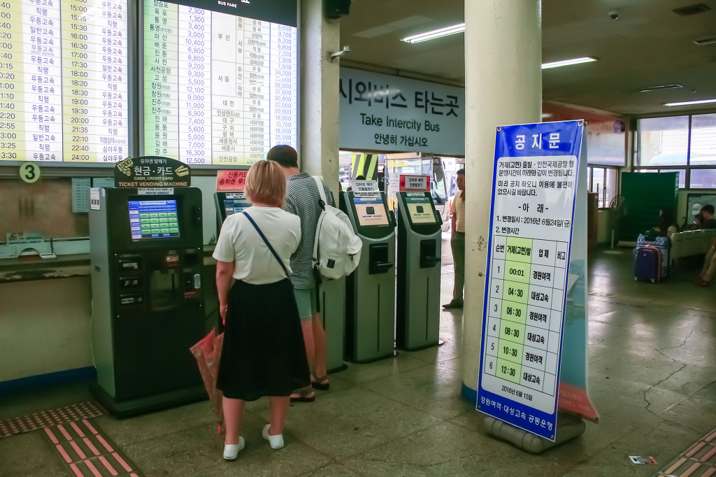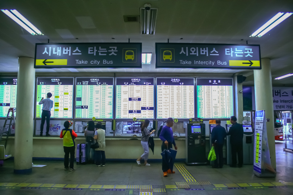 모여있는 것이 눈에 띈다. 아무래도 시내버스는 표를 끊을 일이 없으니 시외버스 타는 방향에만 다섯 대가 놓여져 있다.