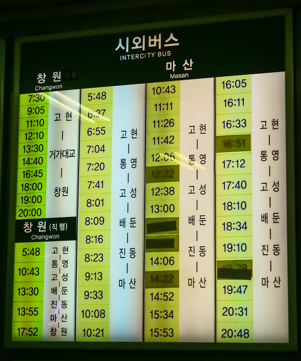 갖추어져 있다. 통영행 노선은 수시로 드나드는데다 첫차가 상당히 일찍 있어 언제 와도 바로 표를 끊어 탈 수 있을 정도로