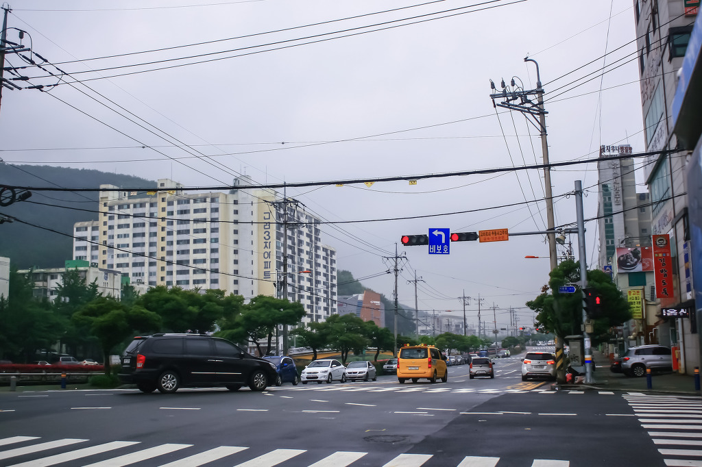 보니 저쪽의 교차로 너머에 바로 바다가 있단다. 어느 바닷가 지역에서도 이렇게 엎어지면 코닿을 거리에서 영업하는 버스터미널은