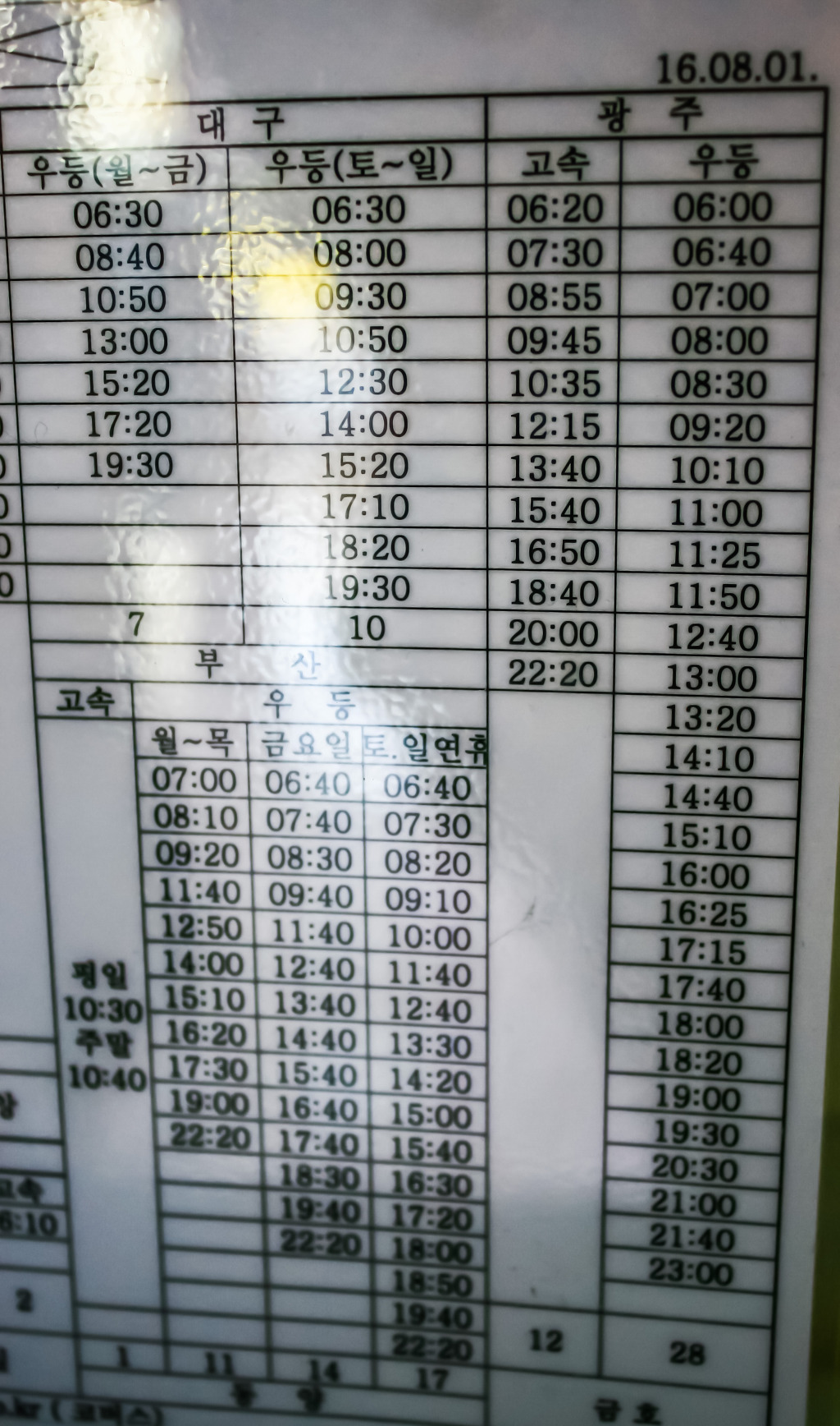 배차 역시 전부 그때와 똑같다. 참여하는 회사들도 울산행에서 동양고속이 빠졌다는 것을 제외하면 전혀 달라지지 않았다. KTX로
