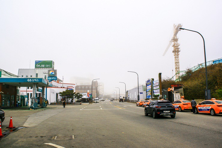 버스터미널, 주유소 너머로도 알 수 없는 공사가 진행되고 있었다.