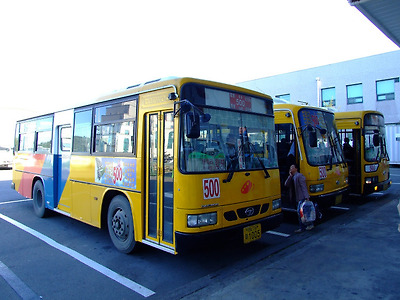 터미널에 주차된 버스의 대다수가 농어촌버스이고, 그 중에서도 대다수가 광주를 오가는 500번 시내버스이다.