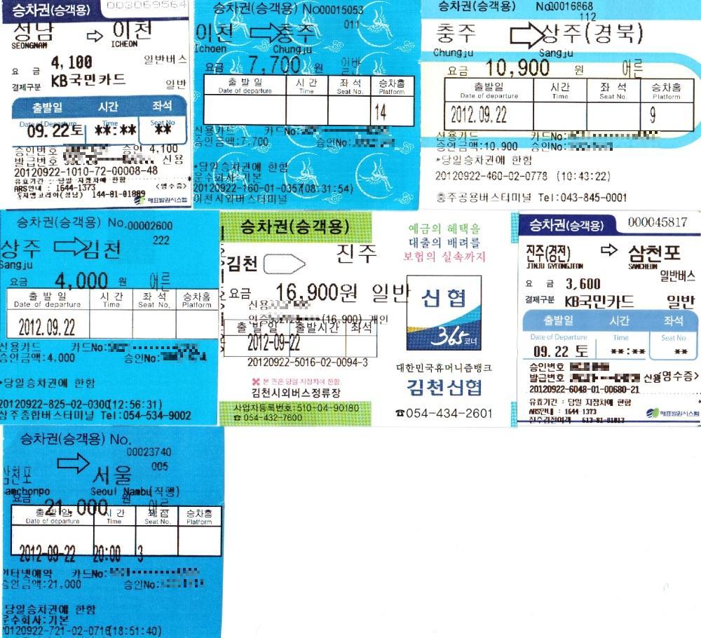 경유지 : 문경터미널 12:05, 점촌터미널 12:25~12:35