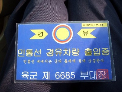 풍암리 검문소에서 헌병에게 신분증을 보여주고나니 아래와 같은 출입증을 줬습니다.