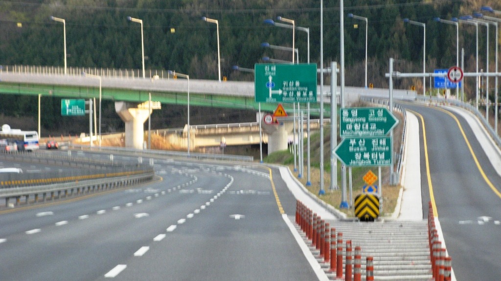 새로운 2번국도인 마창대교 구간이 장복터널 직전에서 합류한다.