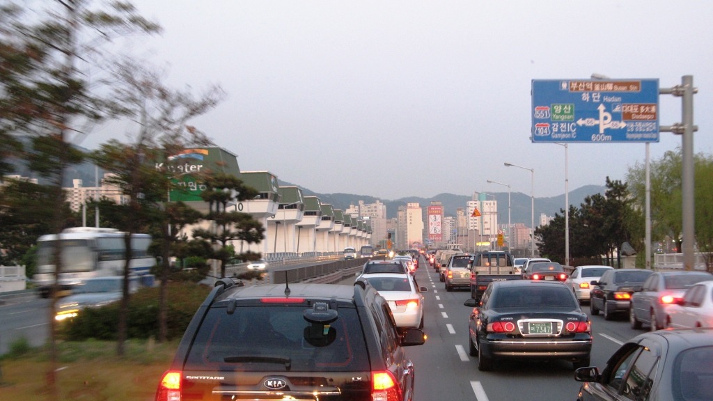 퇴근시간과 맞물려 예상대로 낙동강하구둑지나 하단역까지는 정체되고 있다.
