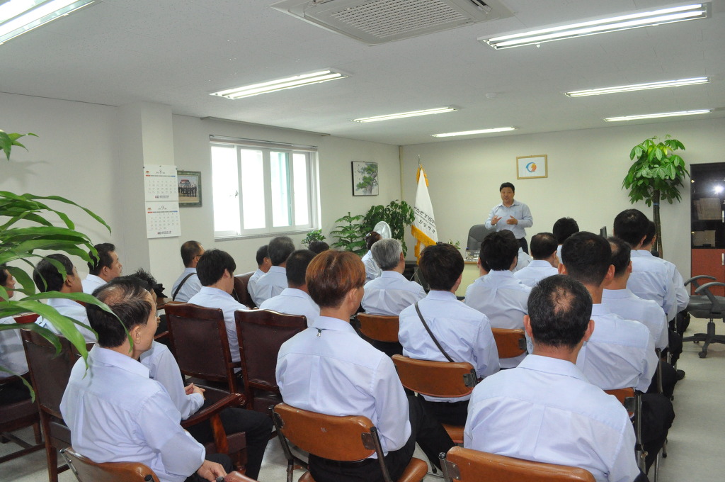 김진구 대리의 열열한 교육을 진지하게 교육을 받고 있는 화성여객 모든 승무사원들의 밝은 표정이 아름답워요!
